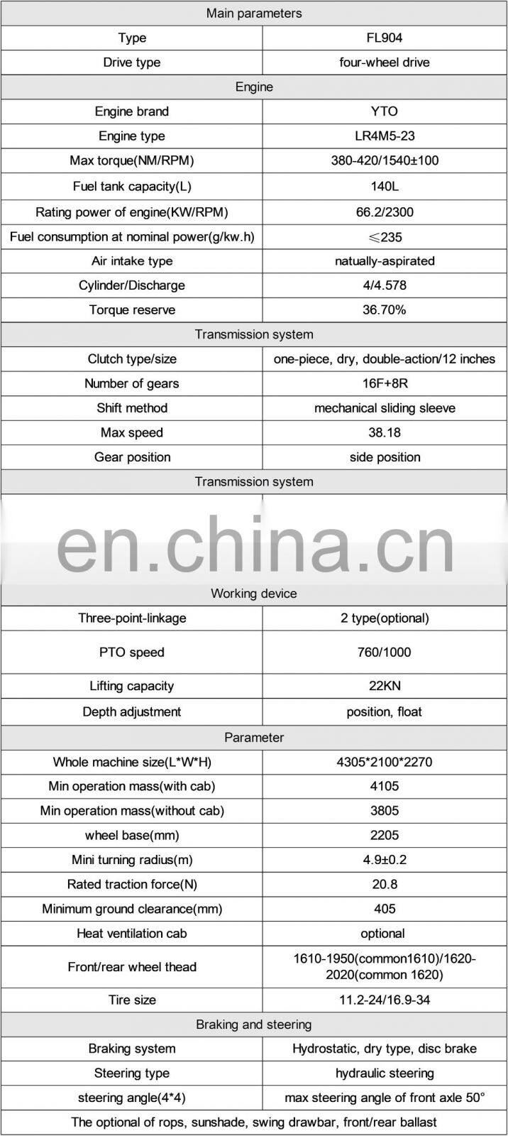 Tractor de Granja de Alta Calidad,110HP Tractor de Cuatro Ruedas FL1104, 2021 HetNegotiableMOQ: 1