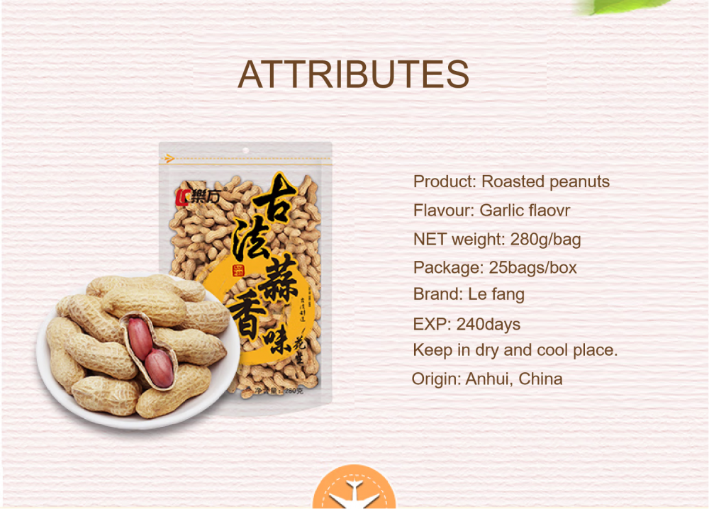 Wholesale Roasted Peanuts With Garic Flavor 280g Factory Price Nuts Snacks Brand Le Fang Traditional Process Series