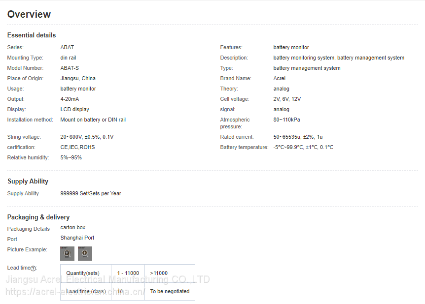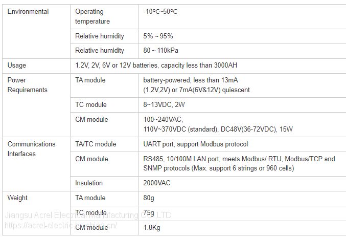 •One TA module device per battery to monitor internal resistance, voltage and temperature •Software is available to retrieve data