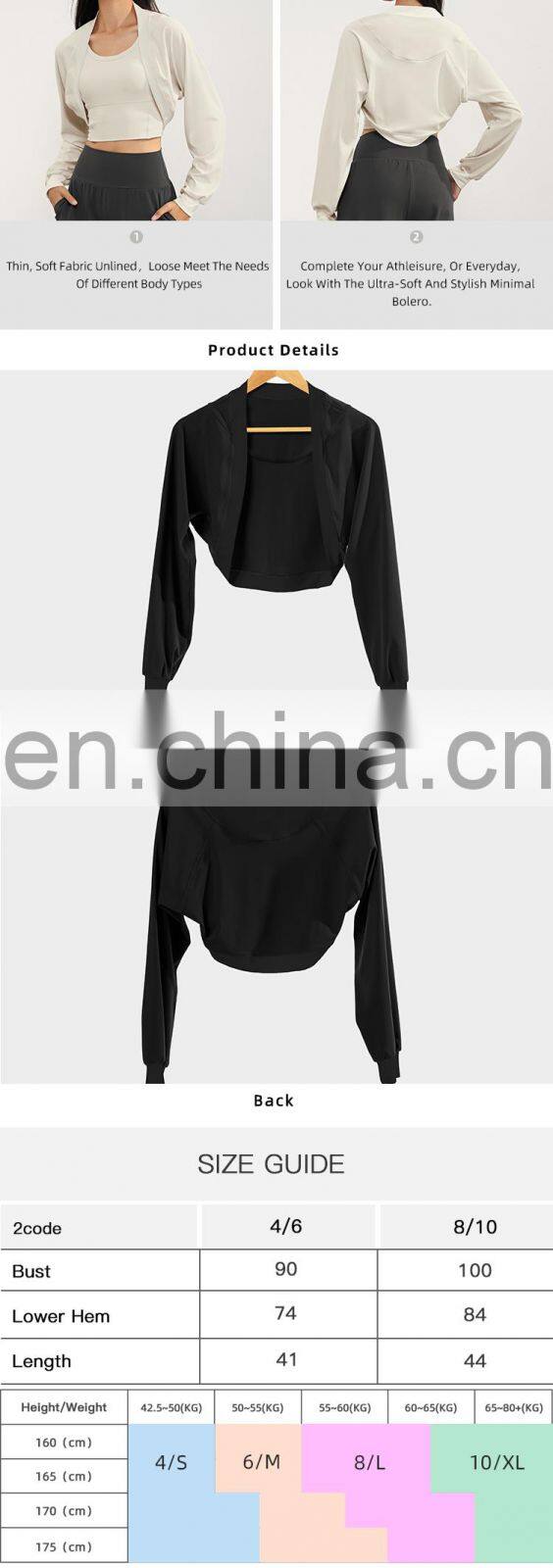 Causal Long Sleeves Quick Dry Crop Tops Sports Women Loose Minimal Bolero Jackets 82nylon 18spandex