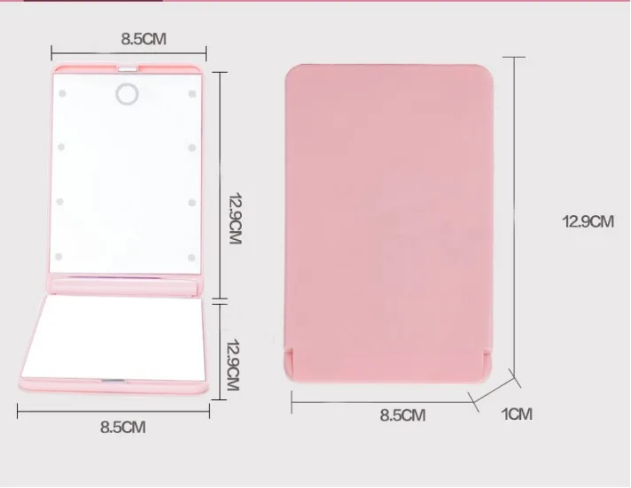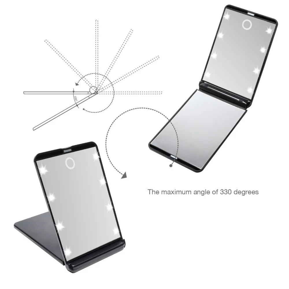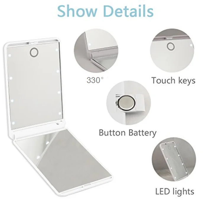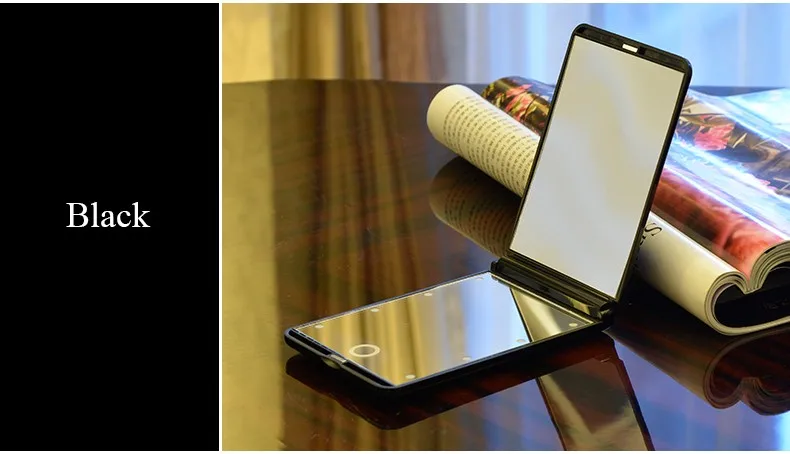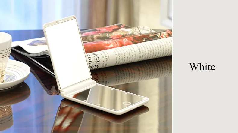 4. Дизайн складывающегося зеркала для путешествий-- Легкий и компактный зеркал, удобный для удерживания в руке, помещается в карман или сумку. Также он может использоваться как фонарик, когда вы находитесь на улице в темноте.