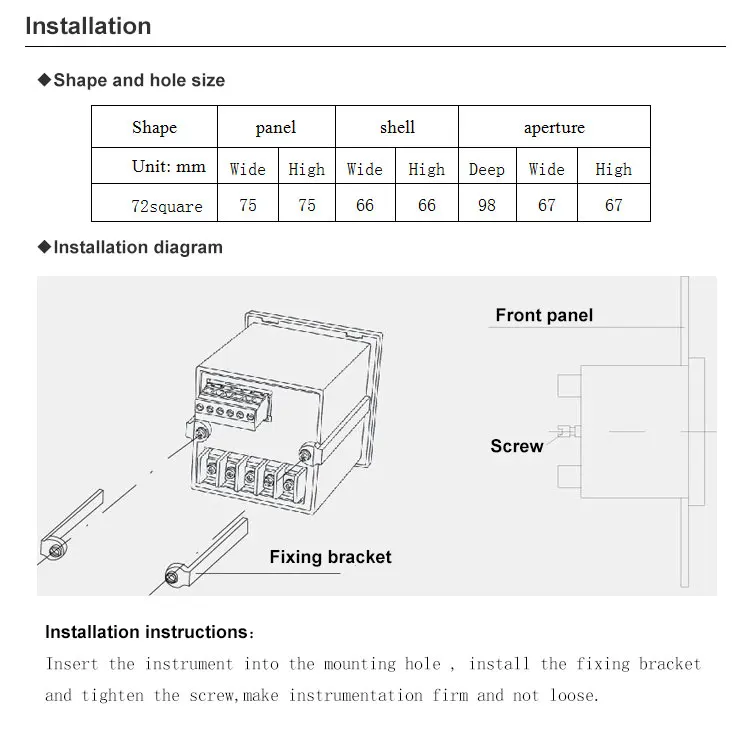 PZ72L-DE | напряжение, ток, мощность, энергия, ЖК-дисплей | 72 квадратных | 1.RS485(/C) 2.12V выходной питания(/V) | ||