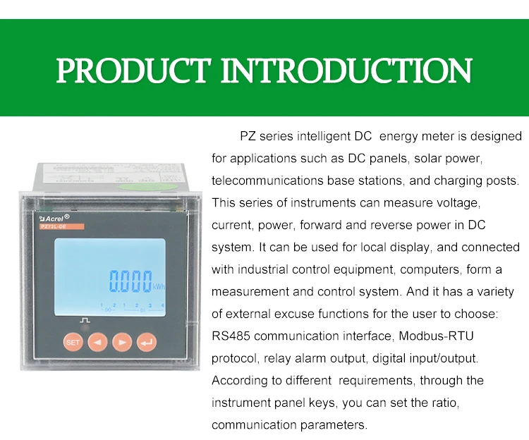 ACREL PZ72-DI/C цифровой панельный измеритель постоянного тока для солнечной фотоэлектрической системы или телекоммуникационной станции с индикацией на светодиодной панели и интерфейсом RS485US$ 63 - 63MOQ: 1 Piece