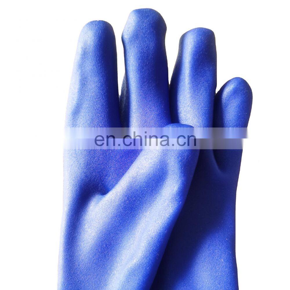 Синие холодостойкие перчатки из ПВХ с хлопковым подкладом с зернистой поверхностью и манжетойДоговороспособныйMOQ: 1