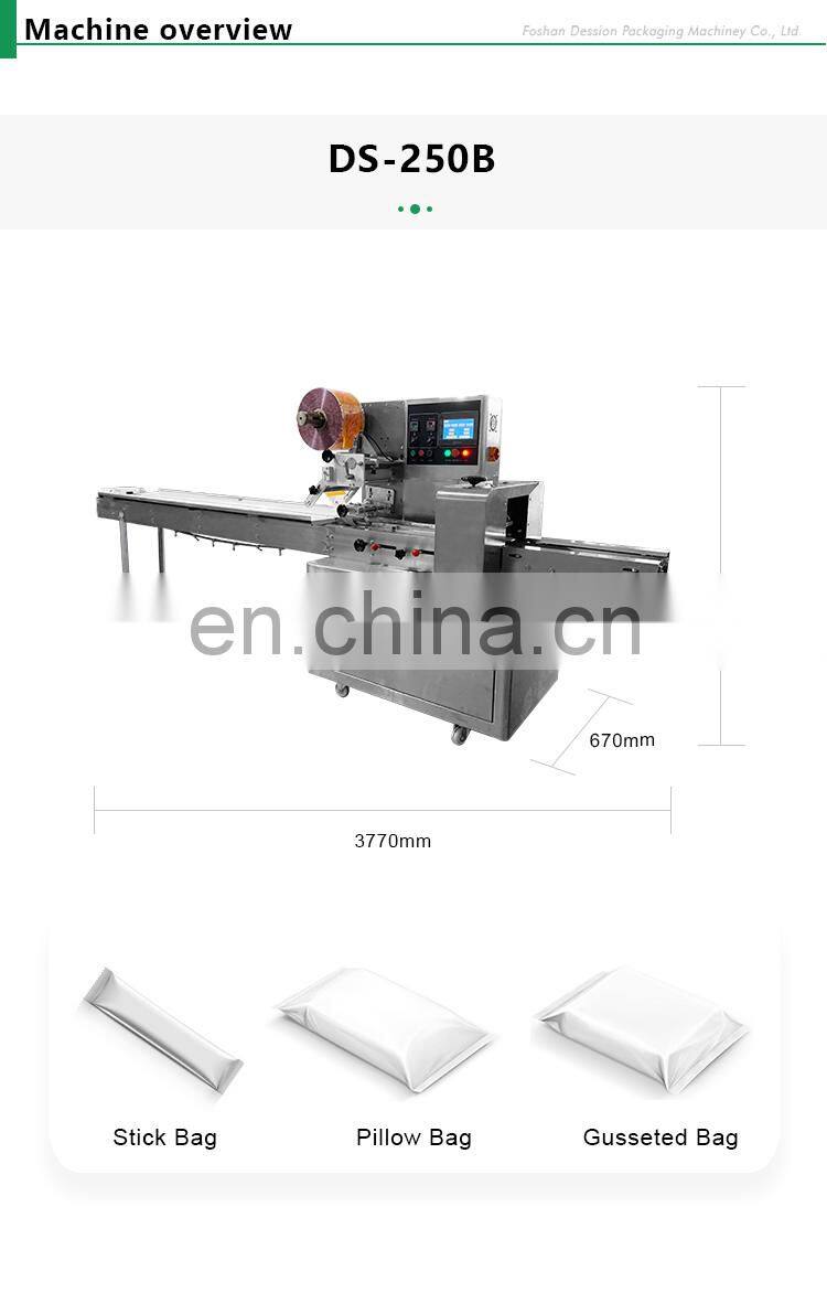 Горизонтальная подушковая машина для упаковки пластиковых фитингов Dession широко используется для различных типов регулярных объектов, таких как продукты питания, лекарства, бытовые приборы, косметика, металлы, промышленные детали, коробки, поддоны, игрушки и т. д.