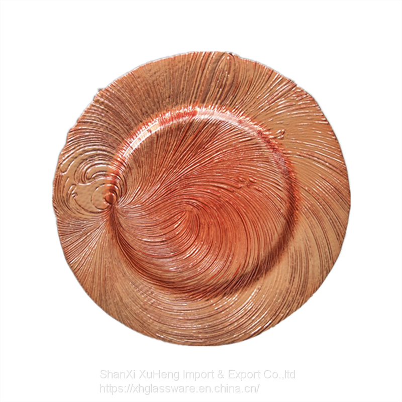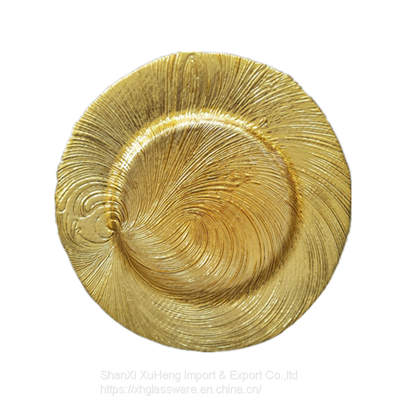Оптовая посуда. Стеклянные сервировочные тарелки диаметром 13 дюймов с золотой и серебряной декорацией.US$ 1.99 - 2.99MOQ: 300 Pieces