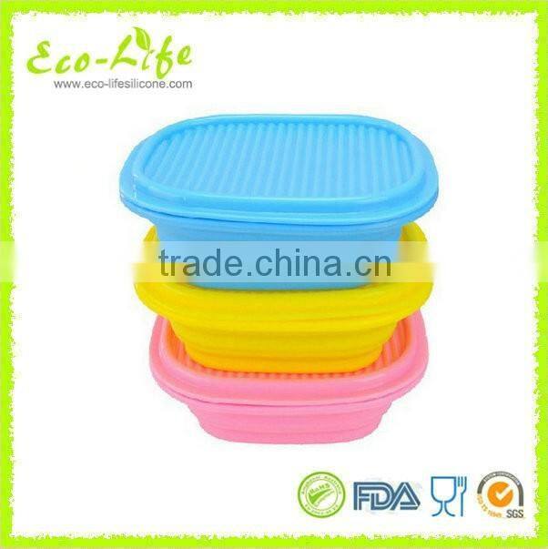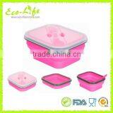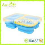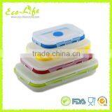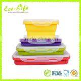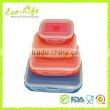 2016 Hot Selling Microwave Safe Air-tight Collapsible Silicone Lunch Box Set of 4 Pieces/ Silicone Folding Lunch Box