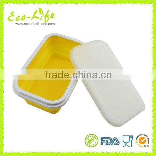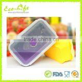 100% Silicone Color Frame Collapsible Lunch Box 600ML, Folding Food Fruit Container For Microwave Oven