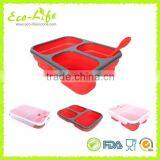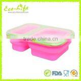 Pack-Away 100% Pure Silicone Color Frame Folding Lunch Box 3-compartment 600+250+250ML , Food Fruit Container