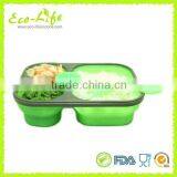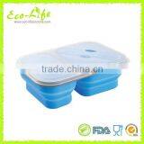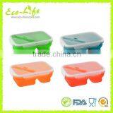 BPA Free 2-compartment 600ML+300ML Silicone Lunch Box Easily Carry Food Container