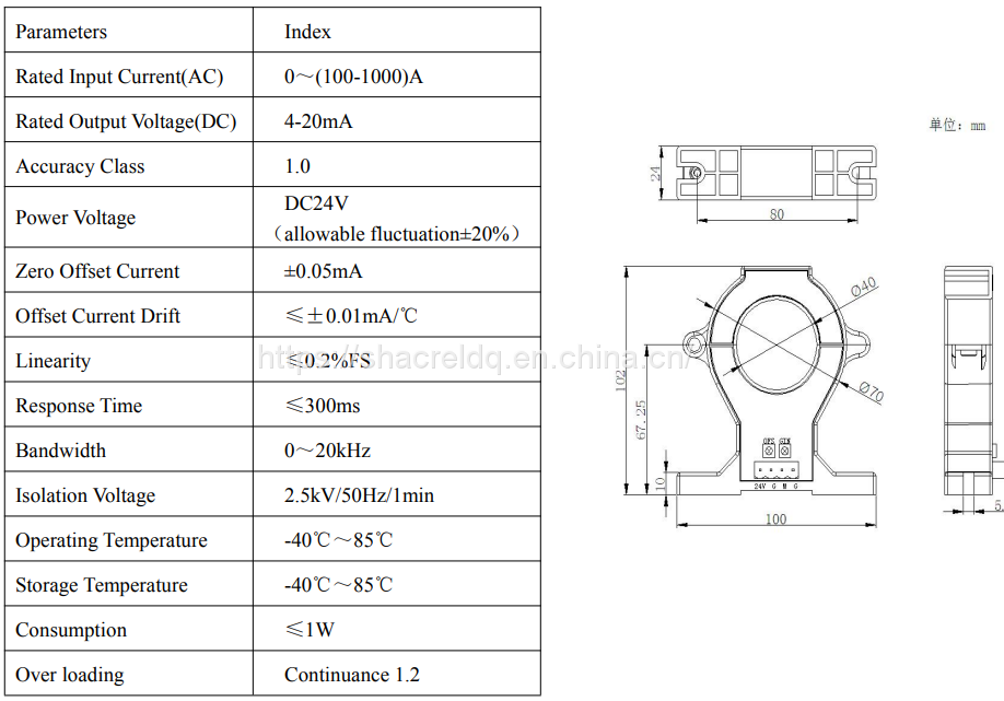 Hall current sensors are mainly used to isolate and convert Ac,DC,pulse and other complex signals .After signals are convertedaccording to the Hall Effect Theory,the can be directly acquired by AD,DSP,PLC, secondary instruments and other devices.Hall current sensors are widel applicable for acquisition and feedback control of current signals in the current monitoring,battery application,inverter,solar power management,direct current cabinet ,DC motor drive,electroplating,welding,frequency converter,UPS servo control systems.They feature the quick response ,wide range of measurement,high precision ,strong overload capcity,good linearity and excellent and anti-interference performace.
