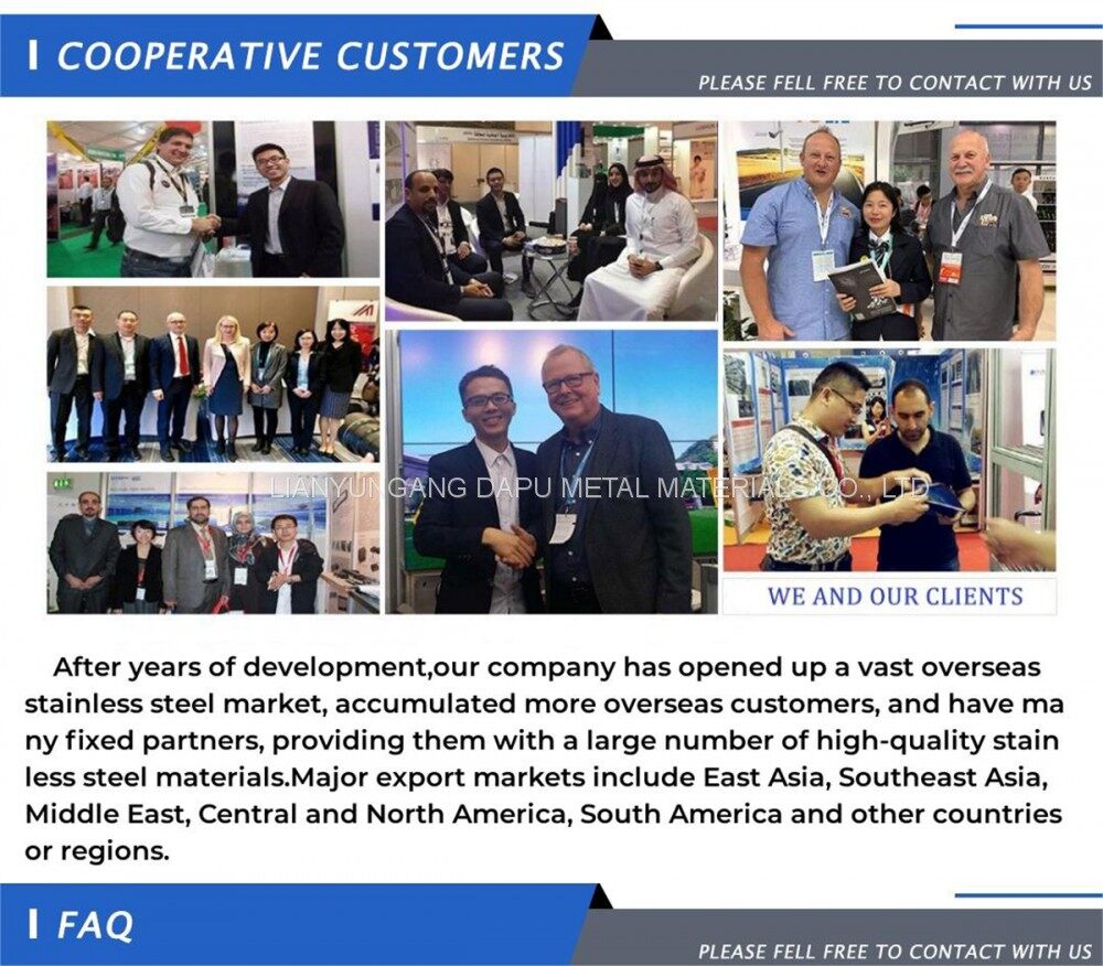 Lianyungang Dapu Metal Co., Ltd in China. 500 Mitarbeiter, 10.000 Quadratmeter Werkhalle, 15 Jahre Erfahrung, 3 Jahre Lieferant für den globalen Markt, ISO & CE-zertifiziert, mit 10 Produktionslinien und einer Jahresproduktion von 50.000 Tonnen, eine Stunde bis zum Hafen von Shanghai. So gewährleisten wir eine gute Qualität und wettbewerbsfähige Preise für globale wertvolle Kunden. Unser Unternehmen ist ein großes Unternehmen, das Produktion, Verarbeitung, Handel und Vertrieb in einem vereint. Unsere Hauptprodukte umfassen Edelstahl, Nickellegierungen, Kohlenstoffstahl, Kupfer, verzinkten Stahl und Aluminium in Form von Blechen/Platten, Wickeln/Bändern, Rohren, Stäben usw.