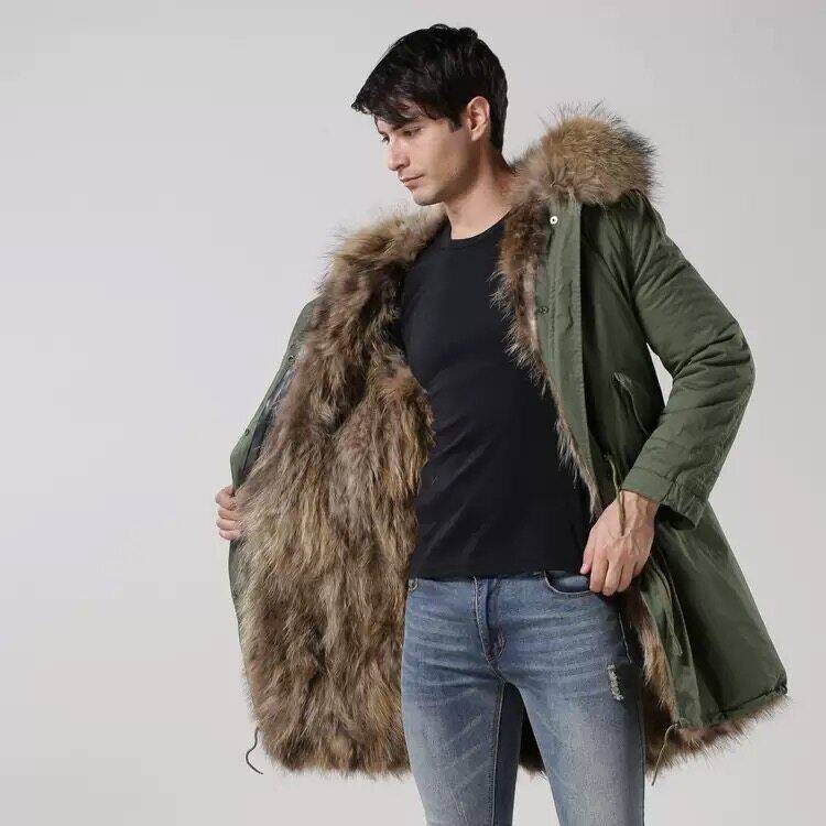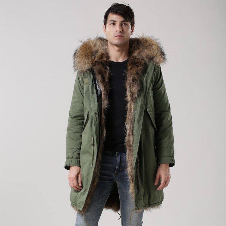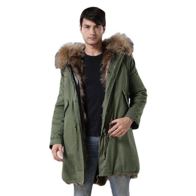 Neuer Stil europäischer und amerikanischer Herbst- und Wintermantel, militärgrün, mittel lang, Wintermantel mit echtem Fuchsfell, Baumwollkleidung