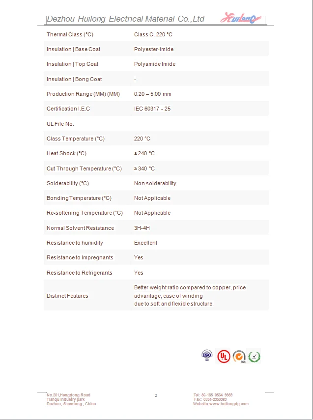 Emaillierter Aluminiumdraht, Elektrikdraht, Polyamidimid-Verbund-Polyester-isolierter Magnetdraht mit UL-ISO9001-Zertifizierung für Transformatoren