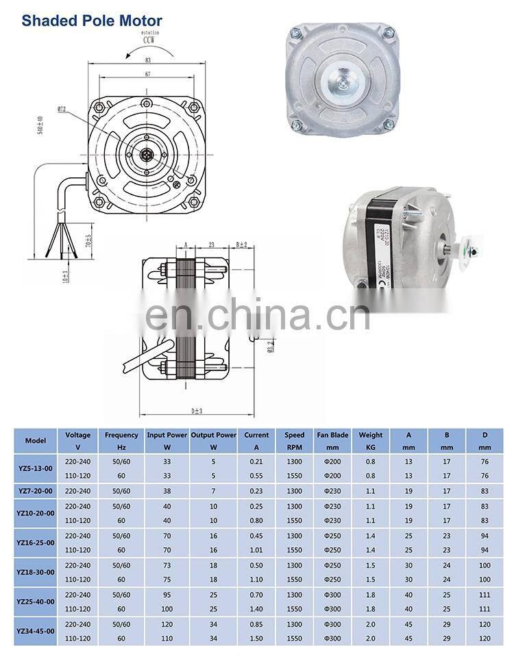 SM550 YZF-550 Motor de ventilador de polo sombreado de CA, motor de ventilador de evaporador para neveraNegociableMOQ: 1