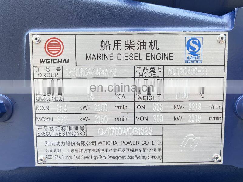 Nuevo motor diesel marino Weichai WD12C400 - 21 de 400hp/2150rpm WD12 para propulsión de barcos