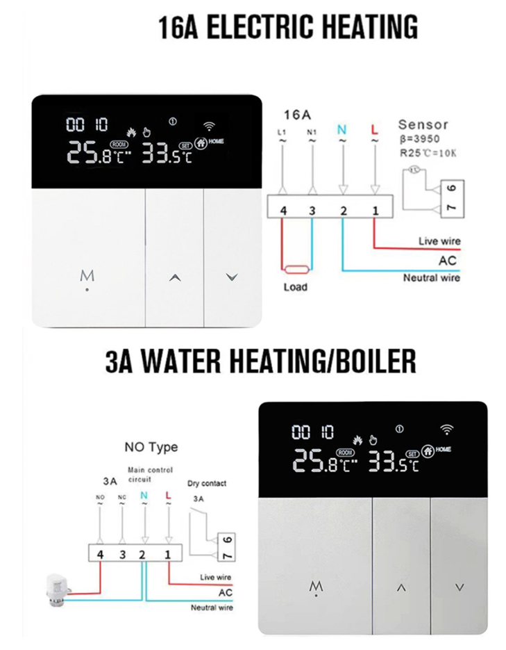 Controlador de temperatura de calefacción por suelo eléctrico WiFi, Controlador de temperatura de calefacción por suelo de agua con aplicación Graffiti, Controlador de temperatura de calefacción a gas