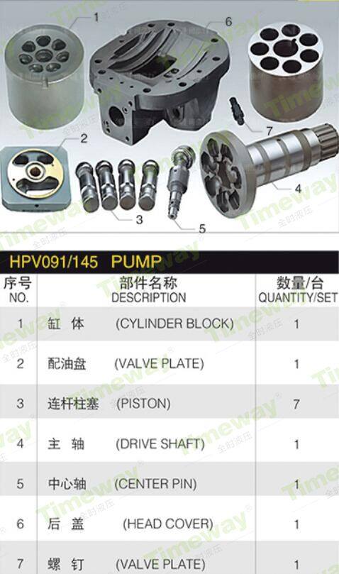 HPV35 (PC60) ; HPV55 (PC120) ; HPV90 (PC200 - 3) ; HPV90 (PC200 - 5) ; PHV95 (PC200 - 6, PC120 - 6 sauf l'arbre de pompe) ; HPV132 (PC300 - 7, PC400 - 6) ; HPV160 (PC300/400 - 3/5) ; HPV135 ; Pompe principale PC30UU ; PC40 - 8 ; PC50 ; PC60, etc. |