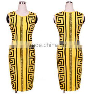 Walson Instyles Retro Round Neck Sleeveless Evening Dress Bodycone Printed Pencil Dress Pin up