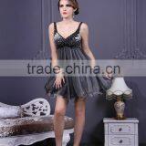 2016 New Arrival Tulle Lotus Leaf Bottom Sleeveless Handmade Beaded Short Black Cocktail Party Dress