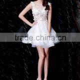 2016 New Arrival Embroidered Design Sleeveless Flower Lace Tulle Short Cocktail Dress