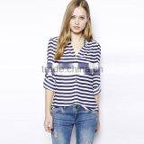 Long Sleeve Bule and White Stripe Casual Women Blouse for Summer