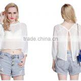 Hot Sale Long Sleeve Backless Chiffon Woman Blouse 2015 Fro Summer