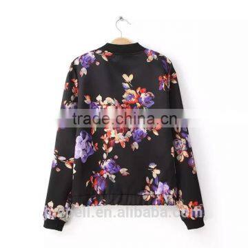 OEM Clothing Plus Size Flower Printed Casual Women Bomer Jacket