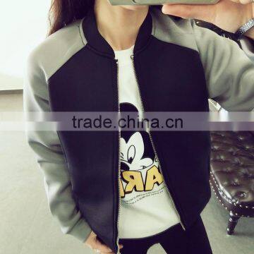 2015 New Arrival Fashion High Quality Double Color Stitching Women Baseball Jacket