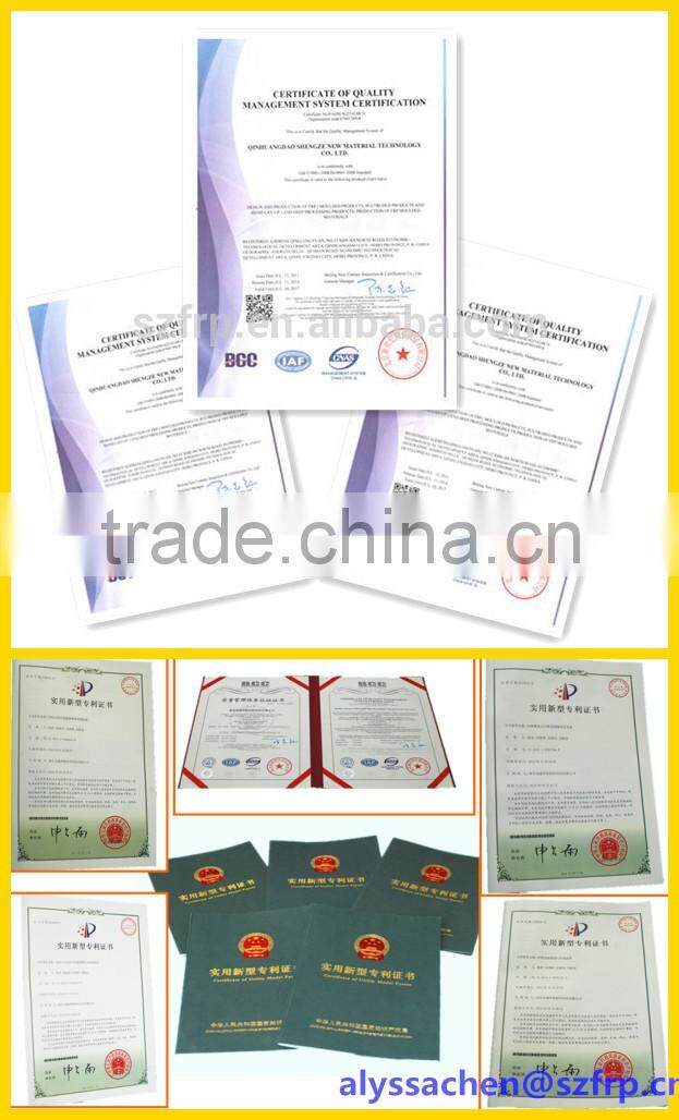 Qinhuangdao Shengze New Material Technology Co.,LTD. formerly is Qinhuangdao HaoTian fiberglass reinforced plastic Co.ltd,was estabilished in 1993. Shengze is a leading and profession manufacturer of fiberglass products for over 20 years. The main products are various kinds of frp pultrusion profiles, SMC products , FRP hand lay out product and vacuum infusion products. The annual production capacity is about 8,000tons. ShengZe with complete sets of professional equipment from fiberglass raw material manufacturing to after treatment. There are 10 advanced frp pultrusion production lines, SMC production line, special frp hydraulic equitment from 100tons-3000tons, RTM production lines and test machine etc. With decades of experience and performance based on excellent technology and dedication to the top quality standards in manufacturing and customer satisfaction. ShengZe ensures our solutions are the most innovative and cost effective ones. As an ISO accredited Company, Shengze shows committed to quality, customer and a willingness to improve efficiency. Shengze FRP products have exported to South Asia, Middle Asia and Middle East, Europe , American and got high praise. We sincerely welcome guests from domestic and abroad to visit and cooperate with us!