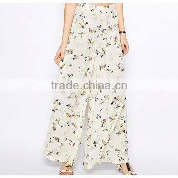 OEM Women Sexy Clothing 2015 Fashion Flower Print Ladies Wide Leg Pants