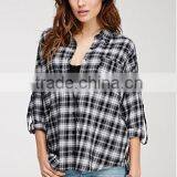 OEM Special Design 100% Cotton Vented Plaid Woman Shirt