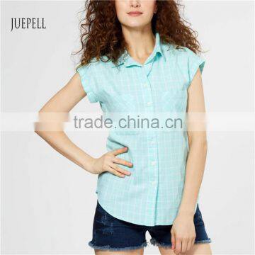 | Function | Blue grid cotton women shirt |