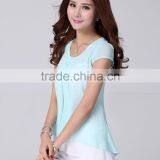 2015 Lady's New Design U-neck Short Sleeve Chiffon Blouse