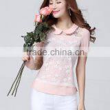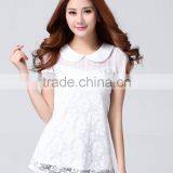 2015 Summer Hot Sale Factory White Short Sleeve Lace Blouse for Woman