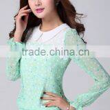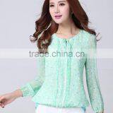 2015 New Fashion Long Sleeve Lady Womens Casual Chiffon Printing Blouse With Good Price