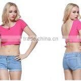 Lastest Design Fashion Sexy Backless Short Sleeve Crop Top With Cotton Fabric