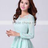 2015 100% Polyester Lady Gender Blouse Women Formal Round Neck Casual Long Sleeve Blouse With Lace