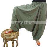 Dull Green Mens Harem Pants Baggy Aladdin Afgani Genie Fisherman Man Pants Trouser Jumpsuit Yoga Boho Gypsy Indian Women