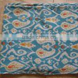 Turquoise Ikat Kantha Quilt Blanket Cotton Quilted Bedspreads Handmade Tapestery REVERSIBLE Throws Gudari