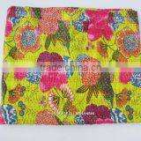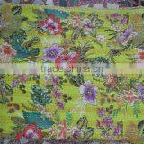 Twin Kantha Quilt Blanket Throw Bedspread Bed Cover In Floral Lime Green Handmade Tapestery REVERSIBLE Bedding
