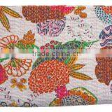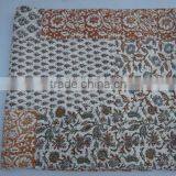 Patchwork Hand Block Printed Kantha Quilt Throw Organic Vegetable Prints Bedspreads Bed Cover Blanket