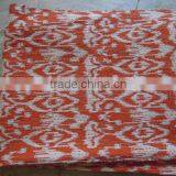 Orange Ikat Kantha Quilt Cotton Blanket Throws,Ralli,Gudari Handmade Tapestery REVERSIBLE Bedding 90x108