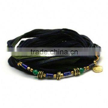 Silk Wrap Bracelet,High polished stainless steel clasp,Natural stone, crystal.