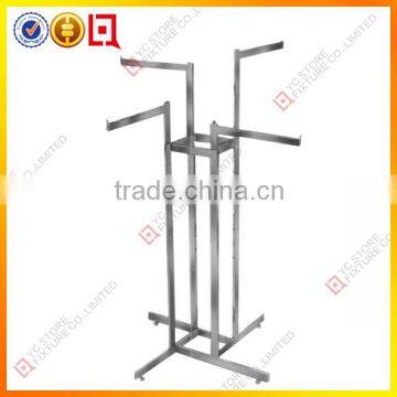 4-way floor standing bag display rack1. Finish: chrome Finish