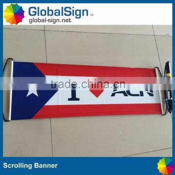 hand banners wholesale is also called fan banner, custom printed retractable fan banner, fans cheering scrolling banner.