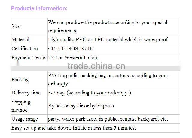 - We provide 2 years quality warranty for all inflatable products