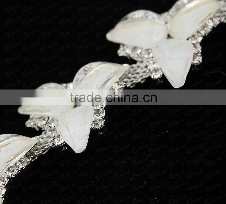 Rhinestone connector chain is connected by the small rhinestones,shaped diamonds,pearls and which can be decorated in the neckline around her waist or condole belt of evening dress and wedding dress.Diamond is glittering and bright,suitable for the decoration of bride bridesmaid dress and especially suitable for belt series.Slender dress or dress with unique rhinestone connector chains which are elegant,simple and beautiful! You can DIY into jewelry head hoop with lace.Some unknown designers like to DIY for clothing & bags&shoes&decoration.It can be decorated in long boots sides.It can also be used for Bride and bridesmaid dress diamond chain,necklace,bracelet,bag decoration,handbags,jeans garment accessories,mobile phone and other accessories.