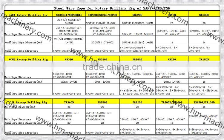 Steel Wire Rope for XCMG Rotary Drilling Rig XR280D