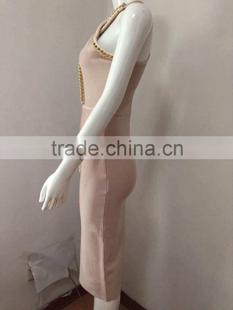 2016 New Black White Khaki Sey Deep V-neck Beading Bodycon Elegant Celebrity Party Pencil Women Knee-length Bandage Dress